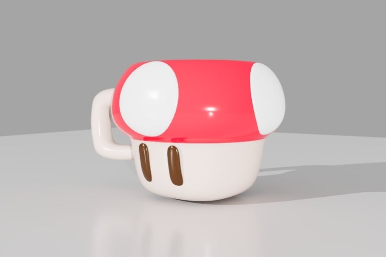 I figured it needed to be a mushroom, since it´s one of the most recurrent items in the Mario franchise, it could have been any other item, but I decided to go with an easy one and model a mushroom shaped mug from scratch.